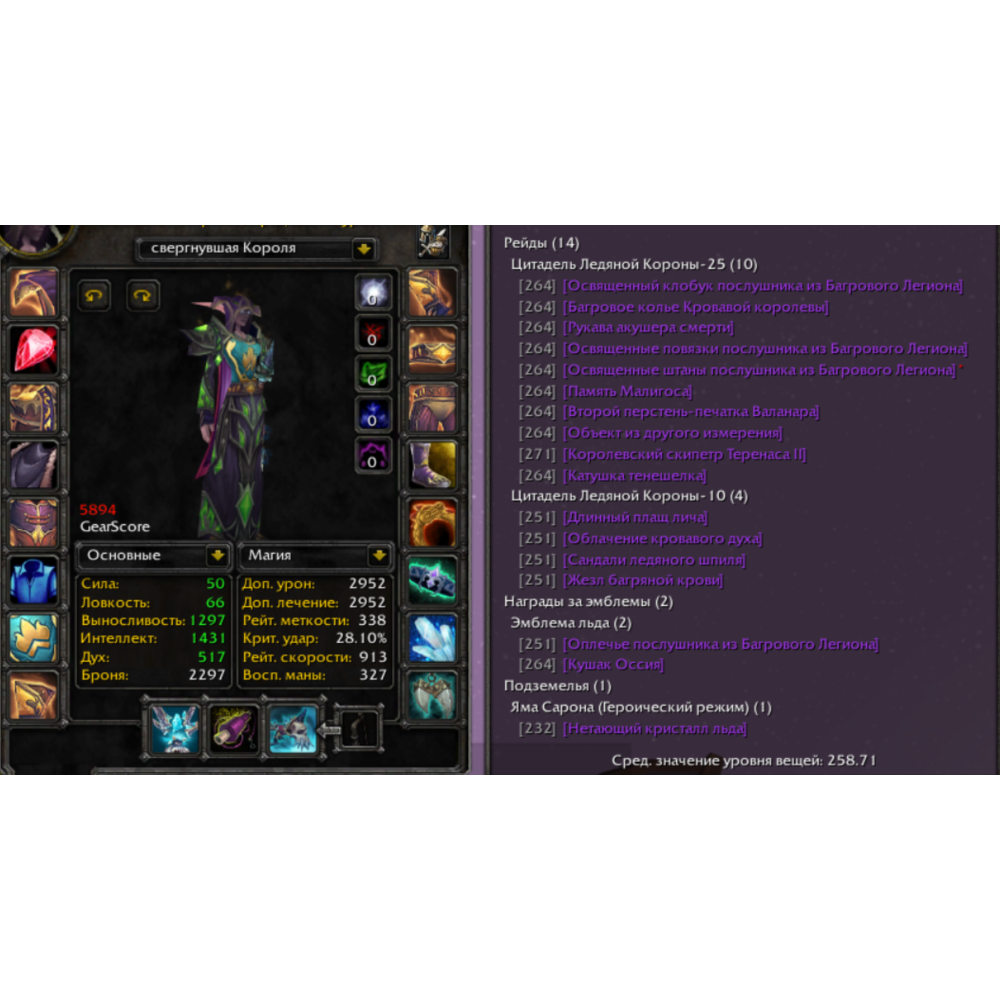 Все предложенные аккаунты wowcircle имеют подробное описание, а также скриншоты персонажей. В нашем магазине вы найдете героев на любой вкус: желаемые классы, уровень экипировки, нужные достижения, и даже прокаченные профессии - все условия для комфортной игры без затрат сил, чтобы вы могли получать только положительные эмоции, и всегда быть на актуальном уровне. Все персонажи вовциркл находятся на разных игровых серверах, так что вы сможете сразу начать играть с друзьями, и быстро влиться в тот уровень контента, на котором сейчас находится ваша игровая компания, и вместе начать покорять новые рейды, подземелья, поля боя и арены.